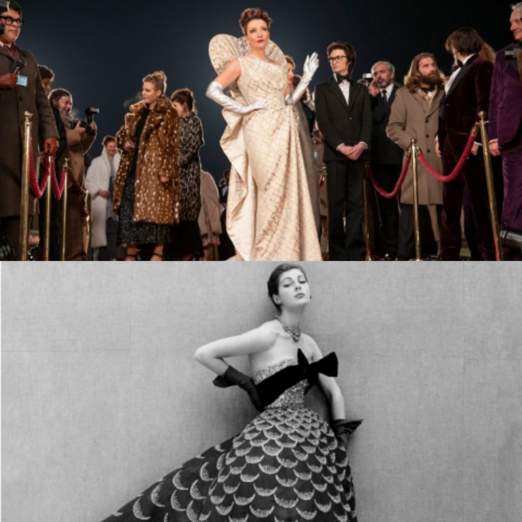 Но в фильме обыграли историю этих нарядов. Так Круэлла на глазах публики сожгла белую мантию, в которой пришла, оставшись в одном платье. А платье из бусин было сделано вовсе не из них, как оказалось сначала. Это были коконы бабочек, которые вылупились прямо перед показом весенней коллекции.